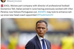 紧随主帅佩雷拉步伐,奥恩斯坦:狼队总监多梅尼科-泰蒂离职