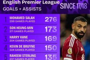 - 近9年英超参与进球榜:萨拉赫276球断崖领跑,孙、凯、丁丁列前四